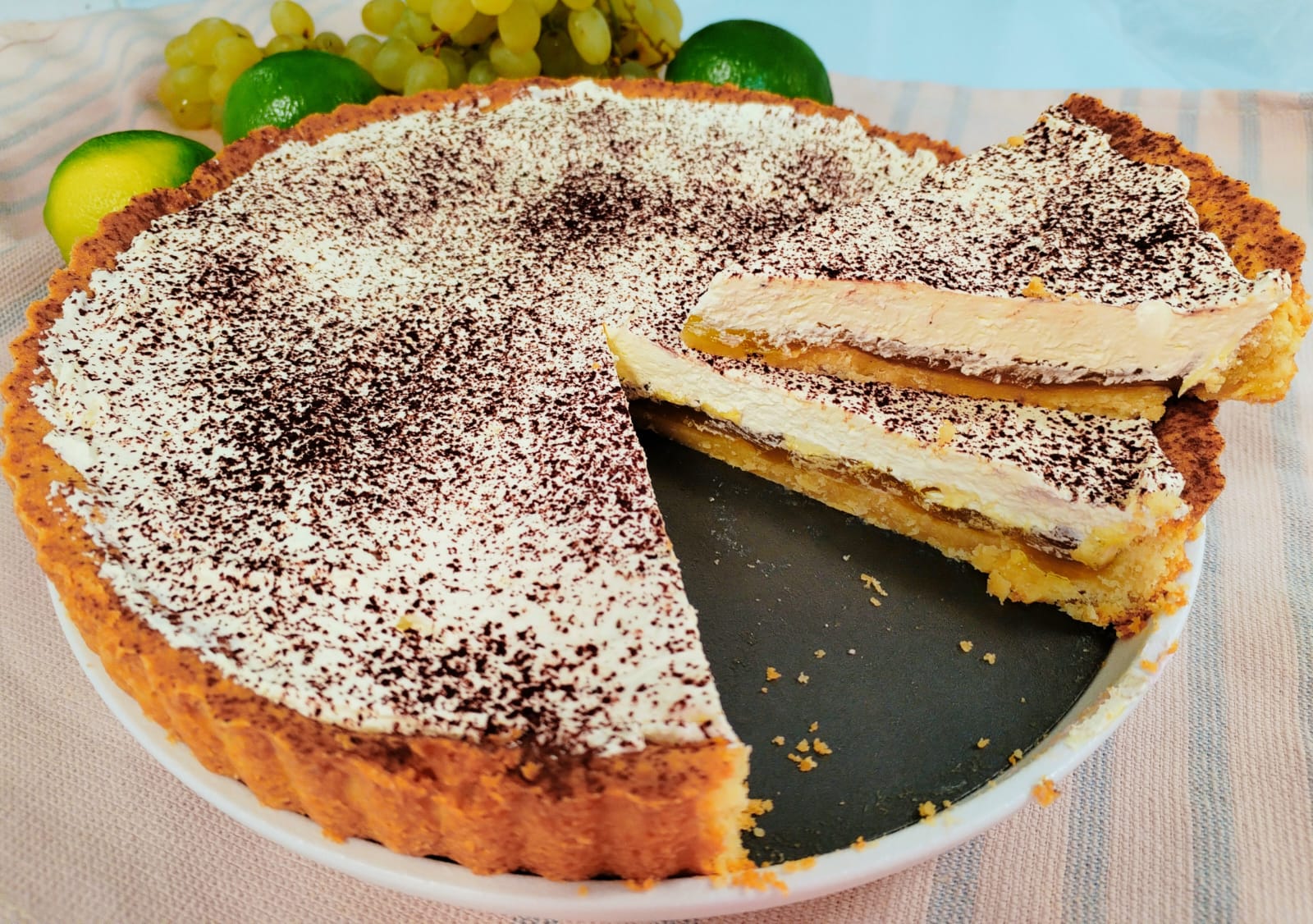 Нежный десерт с хрустящей основой и ароматным цитрусовым кремом, сочетающий свежесть и лёгкую кислинку.