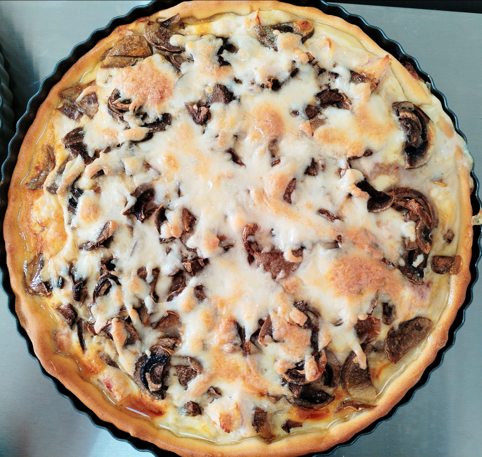 Киш с копченой курицей и грибами в сливочном соусе